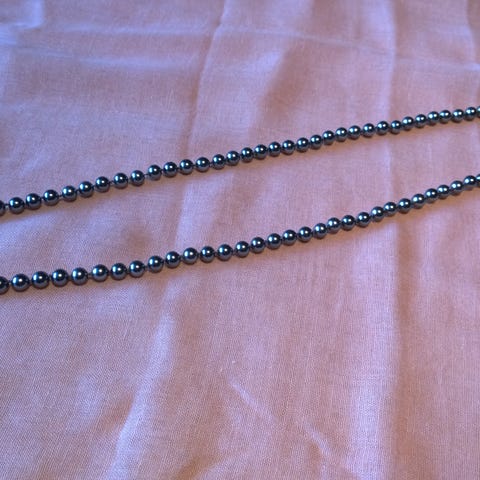 Kolminkertainen helminauha, jonka pituus n. 42 cm.