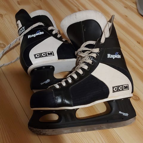 Pinta hyvin kulunut, ei mitkään kauniit yksilöt. Mutta edelleen ihan napakat ja hyvät. Terä ihan hyvässä kunnossa ja MUISTELISIN olevan teroitettu, jonka jälkeen eivät ole paljoa olleet käytössä. Joka tapauksessa terät suht siistit. Ei ruosteessa tms. Nauhat kuluneet.