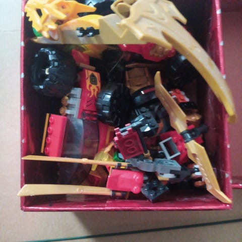 LEGO NINJAGO rakennussarja sisältää punaisen ajoneuvon ja kultaisen lohikäärmeen osia. On hieman paloja puutuneena mutta on silti kykeneväinen leikkimään niilä. Voidaan puhua hinnasta