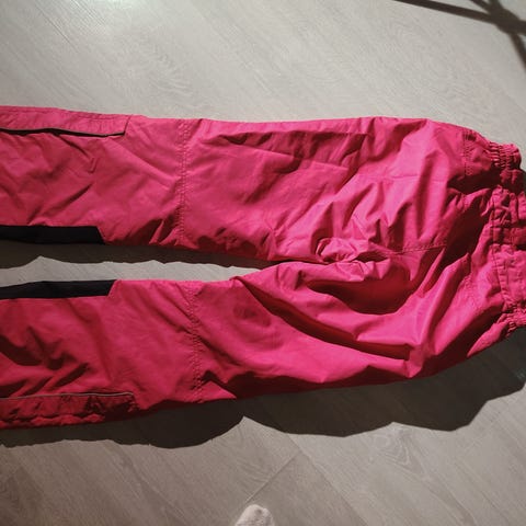Pirteät pinkit toppahousut. Lahkeissa lumilukot. Lahkeissa säätömahdollisuus. Myös vyötäröllä säätömahdollisuus ja kaksi vetoketjutaskua sekä vyölenkit. Jonkin verran tahroja sekä lahkeissa rispaantumaa. Siksi halvalla. Mutta täysin toimivat toppahousuina tai lasketteluhousuina.