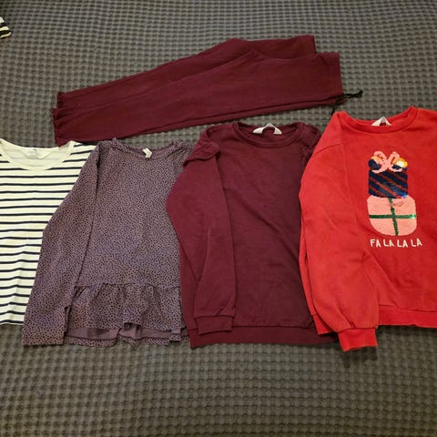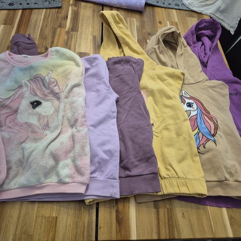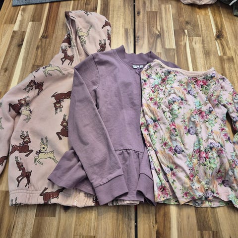 Hyväkuntoisia tyttöjen paitoja. 6 kpl perus pitkähihaisia ja 1 kpl fleecetakki.