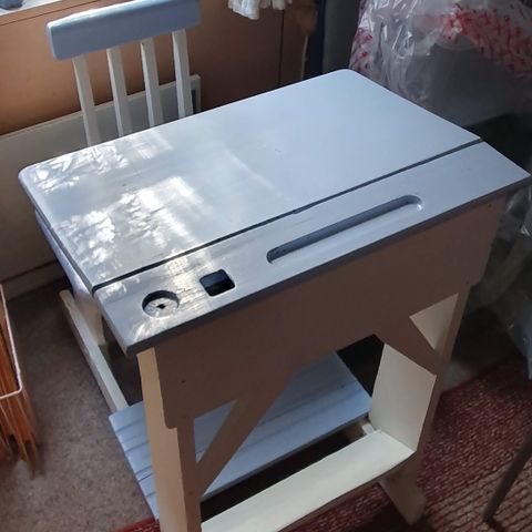 Vanha puinen tuplapulpetti vaikka sisarusten koulupöydiksi. Meillä ollut sisarusten huoneessa ihan koulupöytänä.