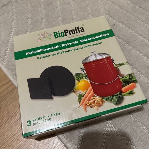 Ylöjärven Vuorentaustassa myydään jäljellä olevat avaamattomat 2 aktiivihiilisuodatin-settiä BioProffan biokeruuastiaan.