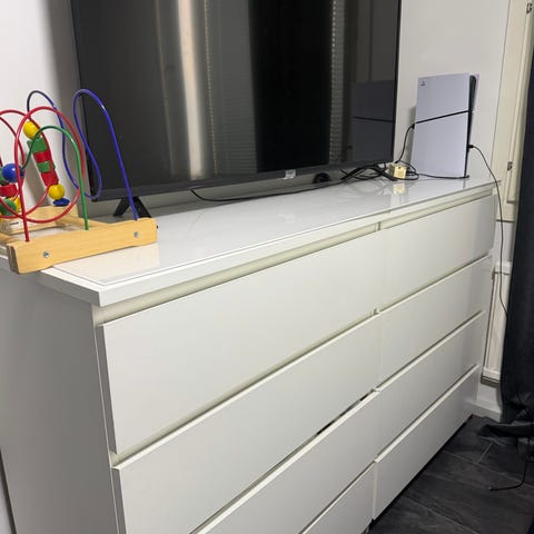 Valkoinen, 6-laatikkoinen Ikean Malm -lipasto.