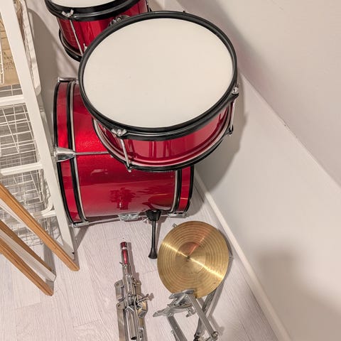 Hyvässä käytetyssä kunnossa seuraavalle soittajalle lasten First Act rummut.
