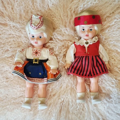 Jokainen nukke on ostettu eri maasta. Nukkeja on säilytetty lasivitriinissä ja vanhimmat niistä ovat 1980-luvulta. Mieluummin myyn kaikki (nukkeja on yli 50) nuket kerralla, mutta yksittäinmyynti onnistuu myös. Tarjoa ihmeessä, jos jokin tietty nukke tai kaikki kiinnostaa!