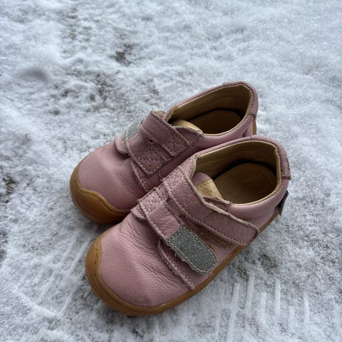 DD Step nahkaiset paljasjalkakengät autokuviolla. Menevät hyvin välikauteen, nahka pitää kosteutta pois ja lämpöpohjallisen kanssa menee hiukan viileämmilläkin keleillä ainakin lämminverisellä lapsella. Yhdellä lapsella ollut käytössä yhden syksyn. Pohjan musta väri tullut leikkipuistossa, jonka alustasta irtosi mustaa, en ole yrittänyt puhdistaa.