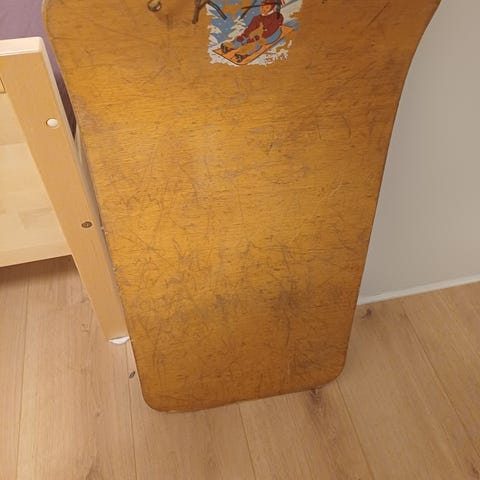 Perinteinen puinen pulkka, valmistettu puusta. Mini koko pituus 37 cm.