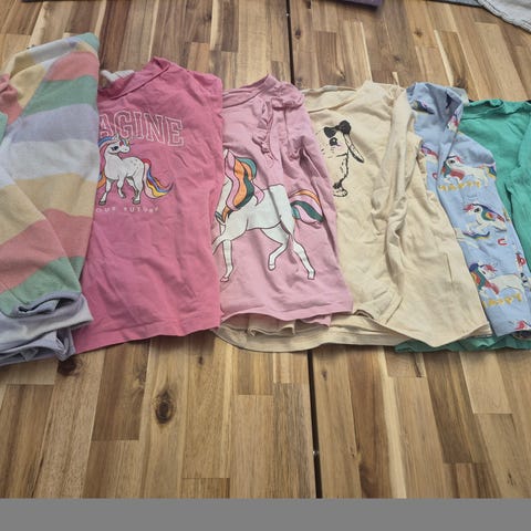 Kolme tyttöjen hupparia, kaksi paksumpaa pitkähihaista ja yksi pehmopaita. Eri merkkien paitoja.
