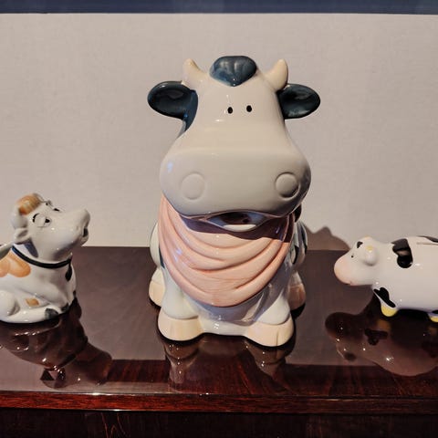 Uusi ommeltu wc-paperiteline, johon käsinpainettu lehmä kuvat.