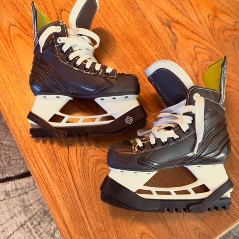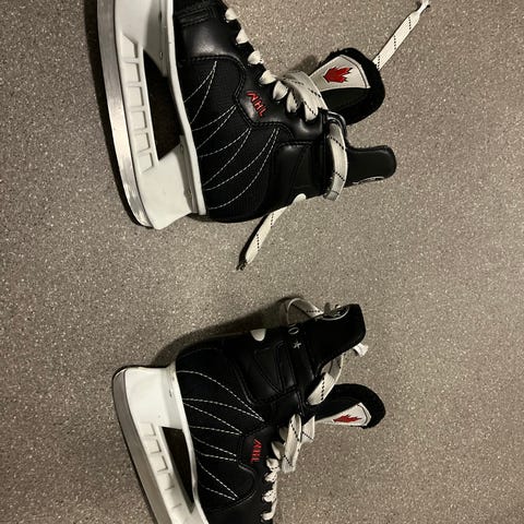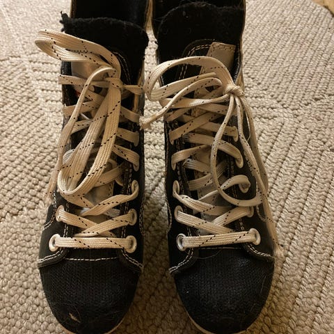 NHL 2000 jääkiekko luistimet, lasten koko 34. Mustavalkoinen väri ja perinteinen nauhakiinnitys. Soveltuu jääkiekon harrastamiseen. Pohjallisen pituus 22cm. Pientä käytön jälkeä, mutta pinnoiltaan ehjät ja käyttökunnossa