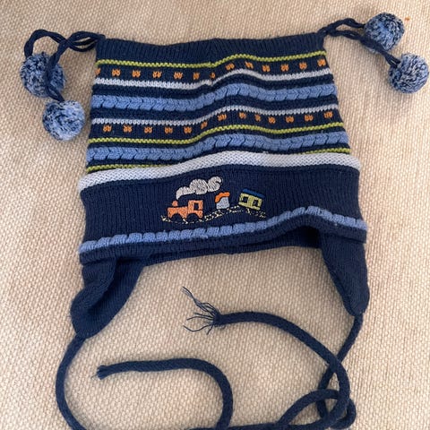 Siisti, tahraton ja ehjä siniraitainen Popin puuvillapipo koossa 9 kk-2v.