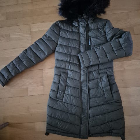 Oikein hyväkuntoinen ja lämmin superdryn talvitakki, malli Fuji, koko xxs. Huppu myös topattu, kiristys ja karvareunuksen saa irti. Ei vikoja eikä tahroja, pieneksi jäänyt.
