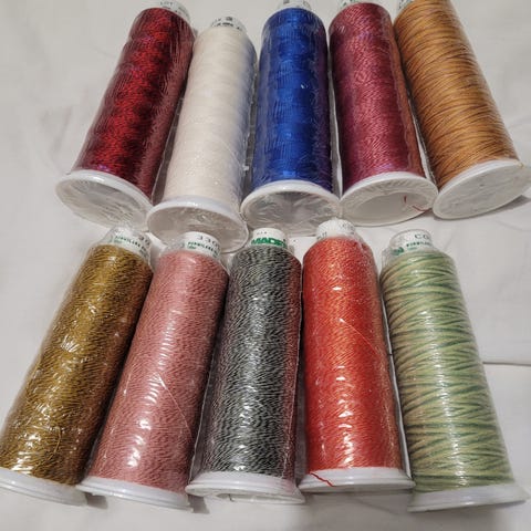 Kuvanmukaiset Madeiran polyesteri brodeerauslangat 4 rll. Jokaisessa rullassa 5000 metriä . Kaikki yhteensä 13 euroa
