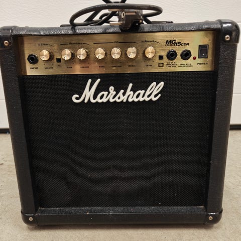 Kuvassa näkyvä Marshall MG101cfx 100wattinen transistorivahvistin. Hyvän kuuloiset efektit, särö, kaiku, delay yms todella laadukkaat.