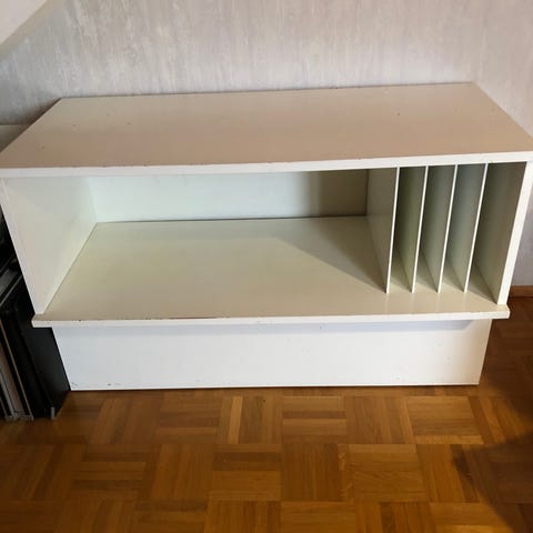 Hyväkuntoinen TV-pöytä, liikkuu kätevästi ympäriinsä renkailla. Vaikka vanhan mallinen, sopii hyvin myös moderneille "litteille" telkkareille. Ylhäältä joitakin pikku naarmuja, mutta muuten kunto ok. Tule hakemaan niin pöytä on sinun!