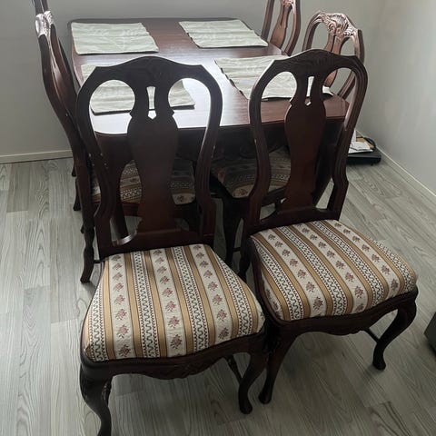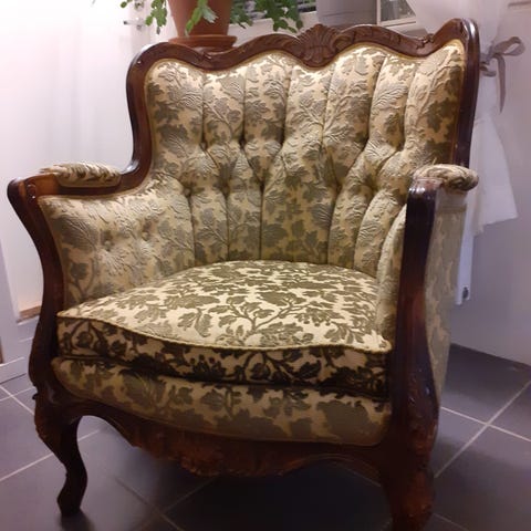 talonpoikaisrokokoota sohva ja sohvapöytä