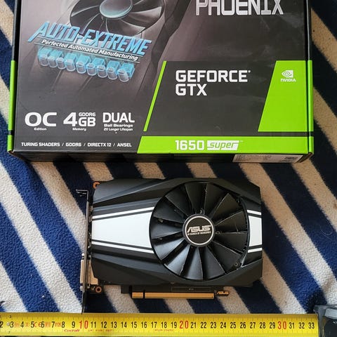 Asus TUF gaming geforce gtx 1650 super näytönohjain. Hyvässä kunnossa! Ollut koneessa kiinni noin 4v, vähäisellä käytöllä. Nyt päivitin uuteen ja siksi myyn. Pyörittää esim. GTA V, CS2 ja Minecraftia shadereillä hyvin. Mukaan näytönohjain, alkuperäinen laatikko sekä pakkausmateriaalit. Voin lähettää tuotteen!