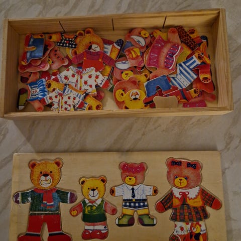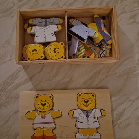 Puinen palapeli/nallepaperinukke