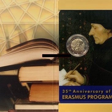 2 € muistoesine 2022 'ERASMUS' suljetussa rullassa, 25 kappaleen.