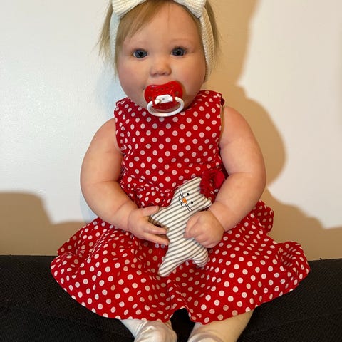 🌸Pää, ja raajat ovat vinyyliä, ja nukella on kankainen vartalo. Täytteenä vanu, lasihiekka ja silikonipelletti.