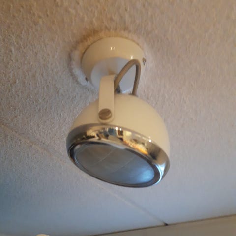 Sporttien koko 20 x 20 cm valkoinen metalli. Lampun kesto 100 W asti .