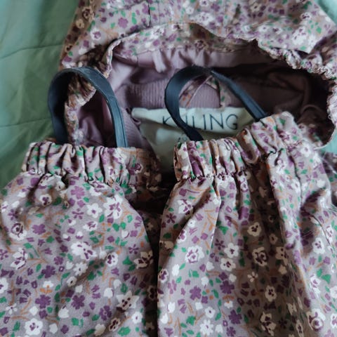 Kulingin kuorihaalari leopardikuviolla. Ollut yhdellä lapsella syyskauden käytössä. Kunto on hyvä. Jalkalenksut on ehjät. Polvissa ja pepun kohdalla hieman värjäymää, haalaria ei ole pesty ja uskoisin että nämä jäljet lähtee pesussa.
