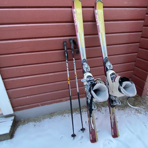 Hyvä kuntoiset kaikin puolin. Siteissä iso säätövara monoille.