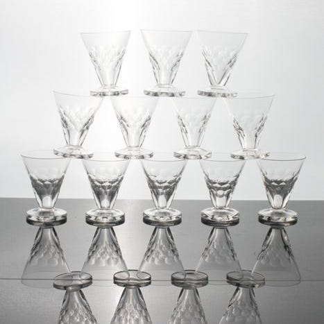 Hopeamalja. Hopea pr.833. Paksu, leikattu lasi. Alkuperä: Ranska, 1900-luvun alku. Hyvässä kunnossa, käytön jälkiä näkyvissä.