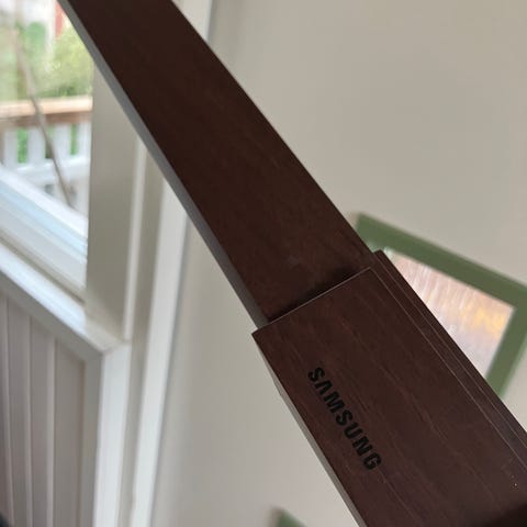 Tummanruskeat, uudet samsung frame tv kehykset. Tilasin väärän vuosimallin kehykset ja palautusoikeus umpeutui joululoman aikana. Pakkaus on avattu. Yhden kehyksen suojapaperi avattu sen verran että tuli todettu ettei sovi meidän telkkariin.