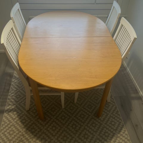 Käytetty, mutta hyvässä kunnossa. Pöytä 100 cm.