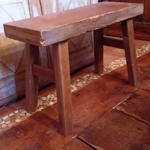 Kaunis, uniikki, siron kevyt ja silti tukeva ja kestävä penkki, joka valmistettu antiikkipuumateriaalista. Kaunis patina, rustiikkinen ulkoasu.