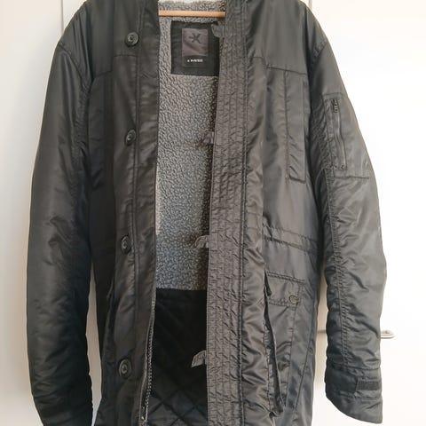 Hyväkuntoinen miesten talvitakki. Vedenpitävä päällinen, sisäosa topattu. Useita erilaisia taskuja