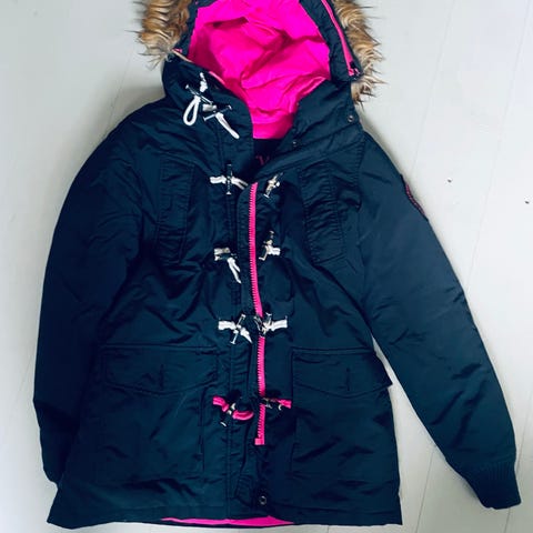 Myydään hyväkuntoinen, ehjä ja lämmin naisten Superdry- talvitoppatakki. Koko S. Ei av.