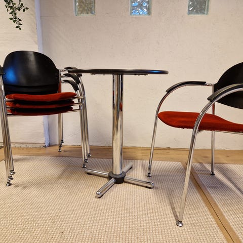 Musta Jyskin pyöreä pöytä ja kaksi nahkatuolia Vekeltä. Voi ostaa yhdessä tai erikseen. Yhdessä hp 180€ ja erikseen pöytä 80€, tuolit 50€/kpl. Saa tarjota! Nouto Kalliosta
