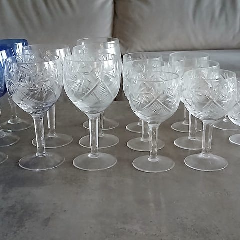 Kauniin koristeelliset kristallista tehdyt konjakkilasit. Korkeus 13 cm.