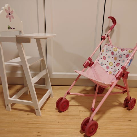 Puinen nuken syöttötuoli, jotain pientä käytön jälkeä voi olla.