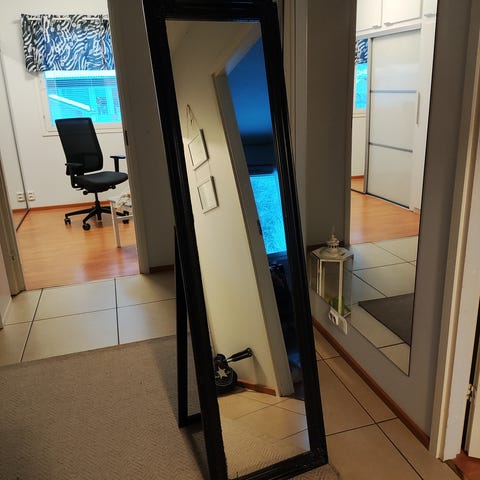Kokovartalopeili valkoisilla puu kehyksillä.