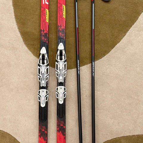 Erittäin hyväkuntoinen paketti perinteiseen hiihtoon.