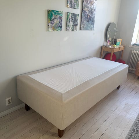 Myydään leveämmän runkopatjan alta pois Asko Bonnell ESSI runkopatja ja Asko Bonnell ESSI sijauspatja. Runkopatjasn kuuluu tammiset öljytyt jalat (kuvassa laatikossa). Sänkty ja petauspatja ovat erittäin siistissä ja moitteettomassa kunnossa. Runkopatjan leveys on 90 cm ja pituus 200 cm. Runkopatjan korkeus on noin 30 cm, jalkojen korkeus 23 cm ja petauspatjan korkeus 7 cm. Yhteensä korkeutta 60 cm. Runkopatjan väri n vaalean harmaa.