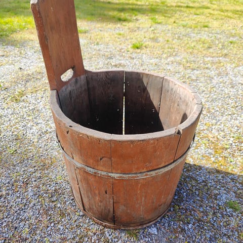 Myydään hapanleipätaikinan valmistamiseen käsin tehty kannellinen juurisaavi ja hierrin(härkin) taikinan sekoittamiseen.