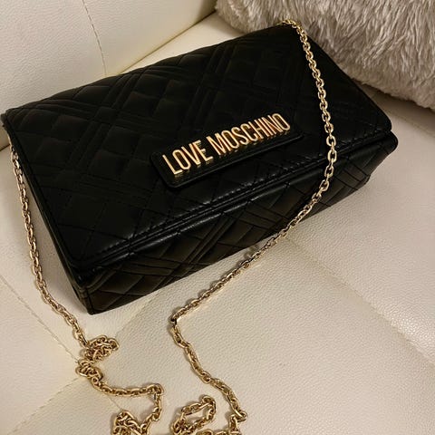 Myydään aito Love Moschino -laukku. Klassinen musta väri, näyttävä kaksoissydän-yksityiskohta ja olkaketju. Tilava ja laadukas laukku arkeen ja juhlaan. Vähän käytetty, erittäin hyväkuntoinen.