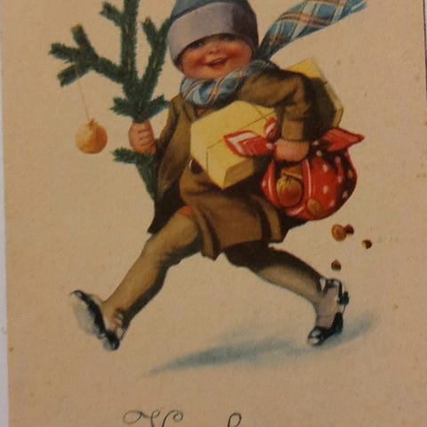 Vanhoja joulukortteja keski-iältään 80 vuotta on tässä koosteessa tarjolla yhden euron hintaan.
