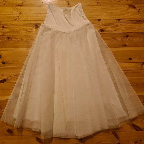 Zazabellasta ostettu S/M kokoinen alushame 3 vanteella. Vanteita voi ottaa pois tai lisätä tarpeen mukaan. Käytetty kerran vanhojentansseissa. Tylli hieman revennyt yhdestä kohtaa (ks. Kuva), mutta ei näy ulospäin.
