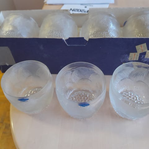 Saara Hopean Nuutajärvelle suunniteleman Pinottava sarjan kaadin sekä 7kpl juomalaseja.