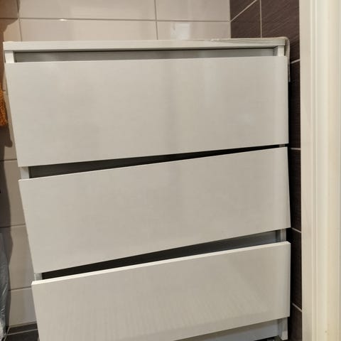 Muuten hyvässä kunnossa oleva lipasto mutta parissa laatikossa vaneri irronnut. Pitää korjata/uusia.