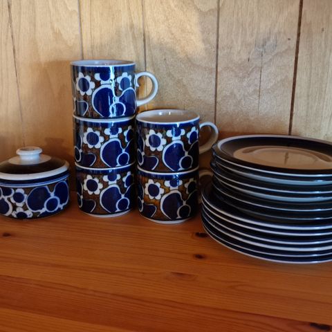 Arabia Saaristo astiasto sisältää useita lautasia ja kuppeja. KOKO ASTIASTO VARATTU