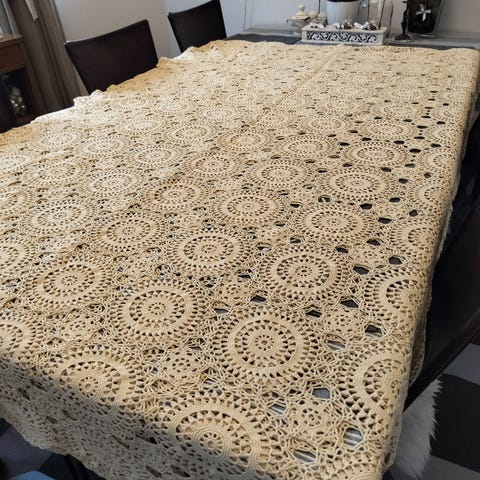 Froteinen, oranssi päiväpeitto 1970-luvulta (ollut omassa käytössä).