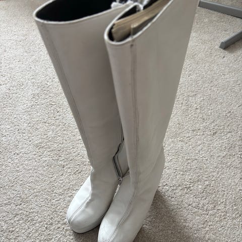 Ylettömän hienot kotimaiset saappaat Kymmenien vuosien takaa.Täysin käyttämättömät!Käsityönä tehdyt saappaat nahkapohjalla,joka pohjustettu vähemmän liukkaalla ja suojaavalla kumipohjalla.Jos nämä kokoiseni,ei ikinä myynnissä.Ei kokomerkintöjä,mutta panin saappaaseen 24cm pohjallisen,joka vastaa n.38 kokoa,mutta todellinen koko varmaan 37.On laadukkaat ja hienot!