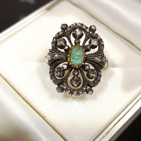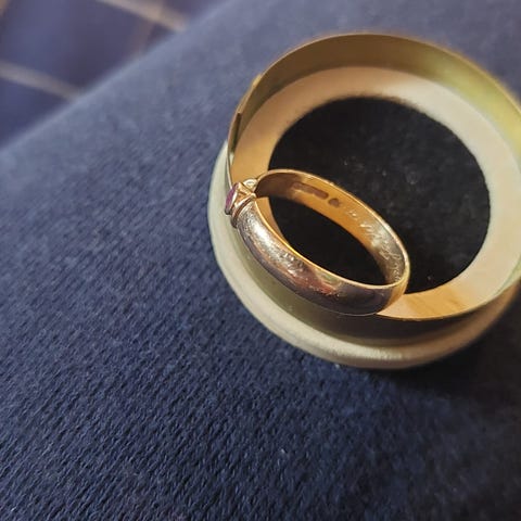 Tosiaan tälläistä ei jokapäivä vastaan tule. Kyseessä neuvostoliitonaikanen kulta sormus ~1939 luvulta. Sormus on 583leimalla eli 14k kulta kyseiseen aikaan kullassa nähtiin hieman punasävyä tässä kanssa löytyy.